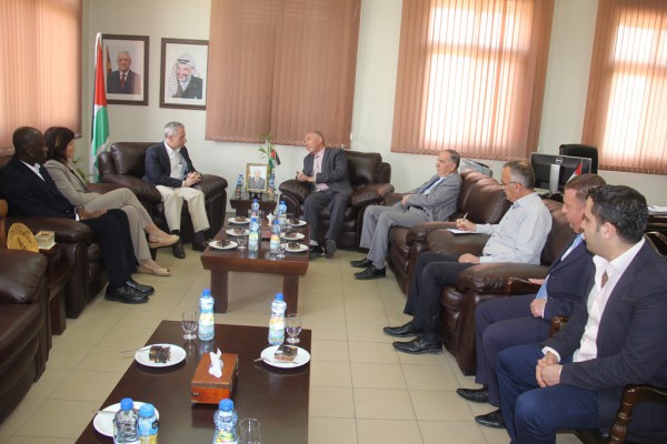 استقبل اليوم الدكتور داود الزعتري رئيس بلدية الخليل في مكتبه القنصل العام الامريكي " مايكل راتني" والوفد المرافق ، بهدف الاطلاع على الاوضاع السياسية والاقتصادية في المدينة وأهم التطورات الاخيرة فيها ، بحضور نائب رئيس بلدية الخليل جودي أبو إسنينه وعضوي المجلس البلدي عوني النتشة والدكتور صلاح الزير الحسيني وعدد من كبار الموظفين في البلدية.