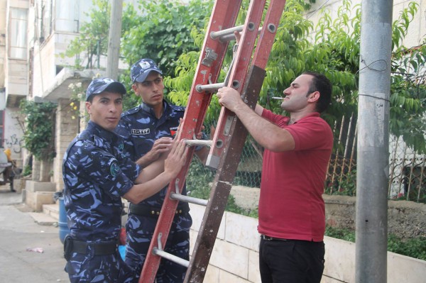 الشرطة تشارك الأهالي بوضع الزينة وترتيب الشوارع ابتهاجا بقدوم شهر رمضان في بيت لحم