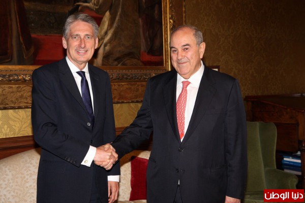التقى د. أياد علاوي نائب رئيس جمهورية العراق السيد فيليب هاموند وزير الخارجية البريطاني للتداول في آخر المستجدات في العراق والمنطقة، وبحث السبل اللازمة في دحر التنظيمات