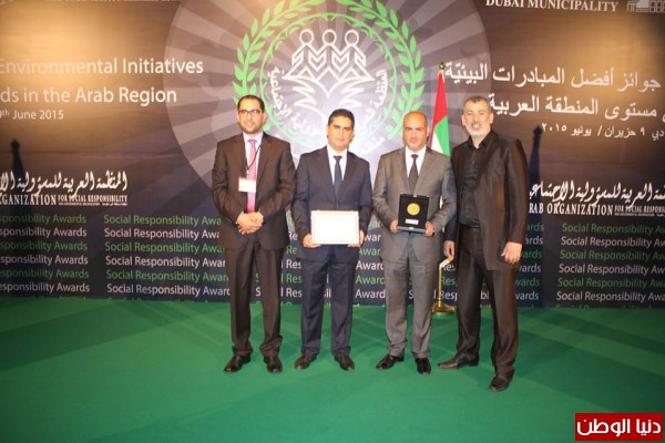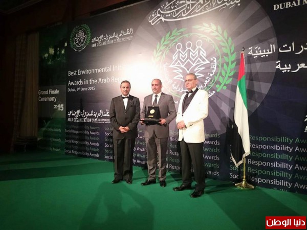 على إثر انتهاء أشغال الملتقى العربي حول المبادرات البيئية نظمت المنظمة العربية للمسؤولية الإجتماعية اليوم الثلاثاء 09 يونيو 2015 بمدينة دبي بالإمارات العربية المتحدة حفلا تكريميا لتتويج أفضل المبادرات البيئة على المستوى العالم العربي.