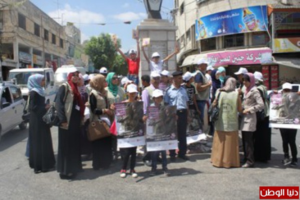 نظمت شبكة حماية الطفولة في جنين اليوم الخميس حملة توعوية لمخاطر استغلال الأطفال اقتصاديا وذلك بمناسبة اليوم العالمي لمناهضة استغلال الأطفال بالعمل والذي يصادف 12/6من كل عام حيث تم عمل منشورات توعوية وبوسترات وملصقات توضح مخاطر استغلال الأطفال بالعمل بمشاركة من الحركة العالمية للدفاع عن الأطفال وتم تعليق لافتات تحمل شعار احياء هذا اليوم تنص على ان :