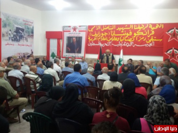 تكريما للرفيق المناضل الاممي "فرانكو فونتانا"، اقامت الجبهة الديمقراطية لتحرير فلسطين مهرجانا تابينيا في قاعة الشهيد القائد "ابو عدنان قيس" في مخيم مار الياس بحضور نجلي الشهيد "لاورا وماسيمو فونتانا" وممثلي الفصائل الفلسطينية والاحزاب اللبنانية ومؤسسات المجتمع المدني وانصار الجبهة الديمقراطية ومناضليها ..