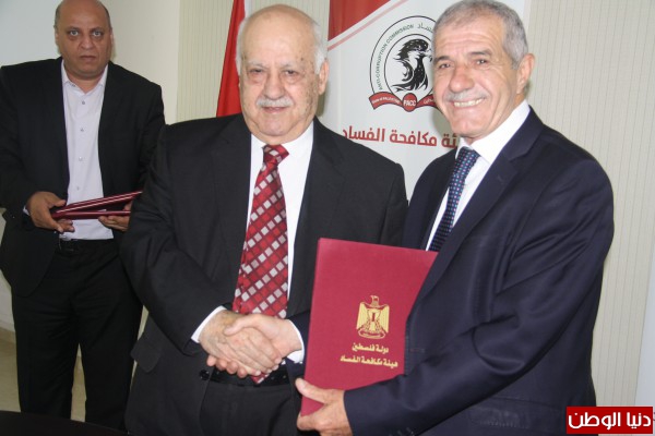 وقع رئيس هيئة مكافحة الفساد السيد رفيق النتشة اليوم ثلاث اتفاقيات عمل للشراكة ضمن الاستراتيجية الوطنية لمكافحة الفساد مع كل من الهيئة الأهلية لتعزيز استقلال القضاء و سيادة القانون – استقلال ، بحضور رئيس مجلس إدارتها ، القاضي عيسى أبو شرار و مع شبكة المنظمات الأهلية بحضور رئيس مجلس إدارتها ، السيد منجد أبو جيش ، واخرى مع جمعية مدققي الحسابات بحضور رئيس مجلس ادارتها ، السيد محمد أكرم حسونة و يذكر بأن هذه الاتفاقيات تأتي في إطار تنفيذ الاستراتيجية الوطنية لمكافحة الفساد القادمة للأعوام 2015-2017 .