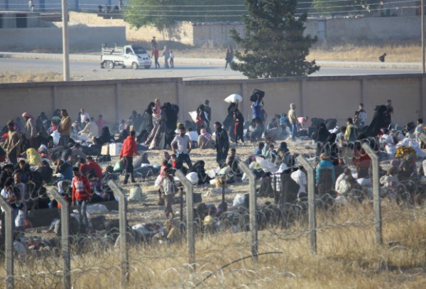 تجمع عدد من النازحين السوريين أمام معبر "أقجة قلعة" الحدودي التركي، هربا من قصف قوات التحالف الدولي لمحاربة تنظيم داعش، استهدف منطقة "رأس العين" (شمال)، بانتظار السماح لهم بالدخول إلى الأراضي التركية.