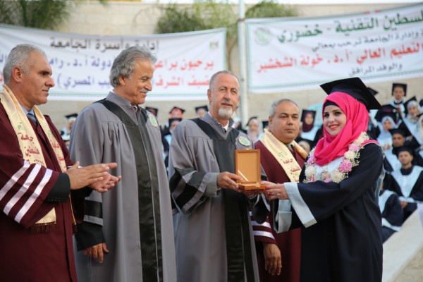 وخلال كلمة إدارة الجامعة التي ألقاها نائب رئيس الجامعة للشؤون الإدارية د.ضرار عليان وخلال كلمة الجامعة التي ألقاها نائب رئيس الجامعة د.ضرار عليان وخاطب فيها الخريجين قائلا: ها انتم طويتم صفحة ناصعة من صفحات حياتكم قضيتموها في رحاب هذه الجامعة الفتية الغراء، جامعة الشعب الفلسطيني، والتي تعلمتم فيها مهارات الحياة ونهلتم من معين علومها قوت المستقبل، وسعينا نحو إرفادكم وتسليحكم بكل الطاقات لتكونون خير عون لأهاليكم الذين لم يدخروا جهدا ولا مالا ليروكم في هذا اليوم الجميل ورودا وأزهارا تتفتح في بساتين المستقبل.