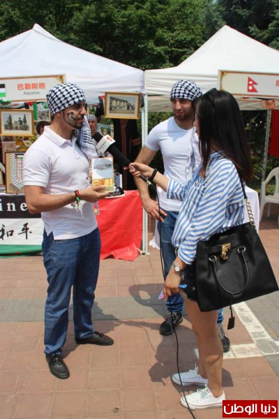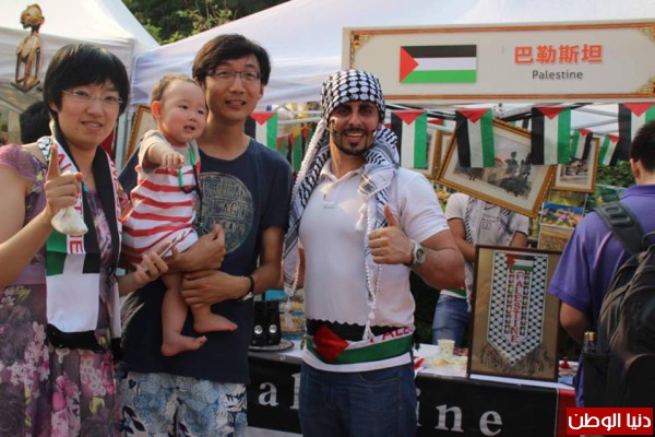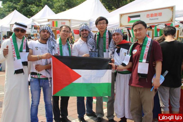 هذا وتخلل عرض لوحات للتراث الفلسطيني وصور لنكبة فلسطين وخارطة فلسطين التاريخية وبعض المطرزات الفلسطينية وتوزيع كتيبات تعريفية عن قضية الشعب الفلسطيني و نكبته باللغه الصينية والانجليزية , وكتيبات توضح جغرافية فلسطين الحبيبة وطبيعتها الخلابة وتاريخها العريق باللغه الانجليزية والصينية ,وهدايا رمزيه للطلاب الصينيين والاجانب المشاركين بالحفل من اجل تعريفهم بقضية شعبنا الفلسطيني المناضل.