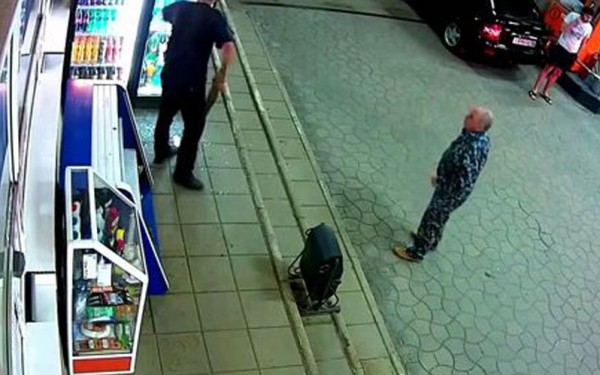 تداول رواد مواقع التواصل الاجتماعى فيديو لرجل يمسك بعصا خشبية غليظة واستخدمها لتحطيم ثلاجة بإحدى محطات الوقود في روسيا ليحصل على زجاجة مياه من داخلها.