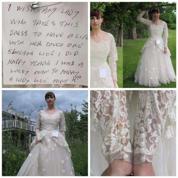 الرسالة التي علقها العجوز بالفستان كان نصها «اتمنى لمن يذهب لها هذا الفستان أن تتمتع بحياة زوجية سعيدة مع شريك حياتها، وأن تقضي معه 56 عامًا من السعادة، فكم كنت محظوظًا أن يكون بحياتي سيدة كزوجتي».