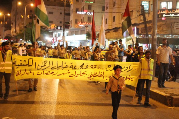حيث انطلق الاستعراض الكشفي من أمام مقر مفوضية الخليل مروراً بشارع عين سارة ودواري المنارة والصحة، حيث تقدم الاستعراض الشبل المتألق عزام سلهب، وتميزت المجموعة بتقديمها أحد المهارات الكشفية المتميزة وهي " لوحة نارية " تحمل عبارة رمضان كريم .