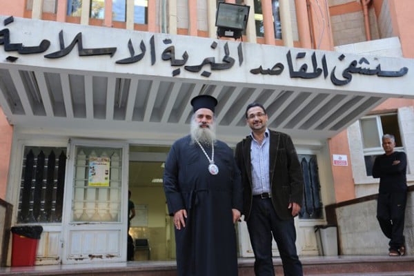 المطران عطا الله حنا في زيارة مستشفى المقاصد في القدس