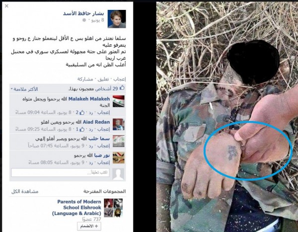 صدمة وذهول في الشارع السوري، بعد قيام مواقع إلكترونية موالية للنظام السوري، بنشر صور لجثث قتلى، قالوا إنها من جيش النظام، وعليها وشم الصليب، الذي يعني أن صاحب الجثة ينتمي إلى الطائفة المسيحية.