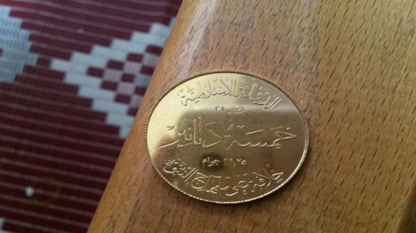 وتظهر صور نشرت في شبكات التواصل الاجتماعي مجموعة من العملات الذهبية وعليها عبارات دينية. وقيل إن قيمة "دينار" تساوي 139 دولارا.