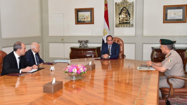 إجتمع اليوم الرئيس المصري عبد الفتاح السيسي، باعتباره رئيساً للقمة العربية في دورتها الحالية، بكل من الدكتور نبيل العربي، أمين عام جامعة الدول العربية، والفريق محمود حجازي، رئيس أركان حرب القوات المسلحة المصرية.