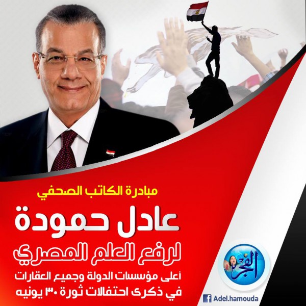دعا الكاتب الصحفي والإعلامى عادل حمودة، ومؤسسة الفجر للصحافة والطباعة والنشر، المصريين، لرفع "علم مصر" أعلى العقارات والمنازل الخاصة بهم، بالتزامن مع الاحتفال بالذكرى الثانية لثورة 30 يونيو التى أطاح خلالها الشعب بحكم الإخوان.