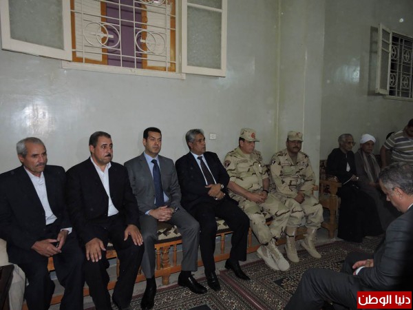 بتلبية جميع طلبات واحتياجات أسر الشهداء داعيا المولى عز وجل أن يتغمدهم بواسع رحمته وأن يرزق أهلهم الصبر والسلوان مطالبا جموع الشعب المصرى بالتصدى للارهاب والمخربين من خلال الاستمرار فى العمل والبناء والتنمية والتعاون مع الأجهزة التنفيذية والأمنية للتصدى للمخربين والمعتدين.