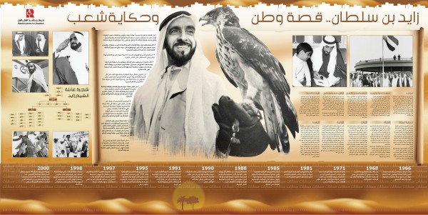 افتتحت الاحتفالية بقصيدة للشاعر عبدالله بن شمة بعنوان (بابا زايد) والتي جاءت بمشاركة الشاعر وولده ، حيث تبادل فيها الشاعر وولده الحوار عن زايد وإنجازاته وحجم محبته في قلوب أبنائه وشعبه واختتمت القصيدة بالتأكيد على أن " زايد " رحمه الله كان بمثابة " أب " لكل أبناء الإمارات فسكن قلوبهم وظل حياً فيها .