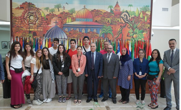 واطلع الوكيل الوفد الطلابي على آخر تطورات القضية الفلسطينية، ومعاناة شعبنا الفلسطيني جراء سياسة الاحتلال الاسرائيلي واستمراره في الاستيطان وسلب اراضي المواطنين الفلسطينين والاعتداء على المقدسات الاسلامية والمسيحية في القدس، مشيرا الى توجهات القيادة الفلسطينية وحرصها على تحقيق السلام الشامل وتطبيق مبدأ حل الدولتين والعيش بامان.