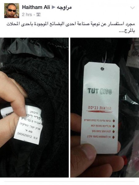 ومن الواضح من الصور المنشورة ان "تيكت" الملابس عليها كتابة باللغة العبرية .