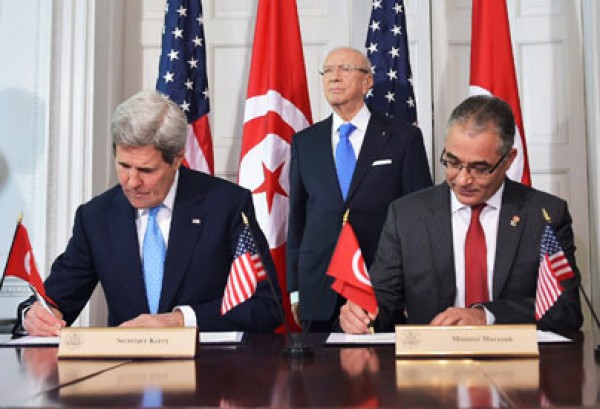 وأمضى الاتفاقية المستشار السياسي لرئيس التونسي محسن مرزوق ووزير الخارجية الأميركي جون كيري.