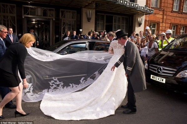ذكرت صحيفة "ديلي ميل" البريطانية، أن حفل الزفاف تكلف مليار دولار وأُقِيم بقصر "كينجستون"، وتألقت العروس بإطلالة مبهرة ممسكة بباقة من الورود البيضاء، حيث تناول الضيوف الغداء المكون من البيتزا الصغيرة والبطاطا مع الكافيار.