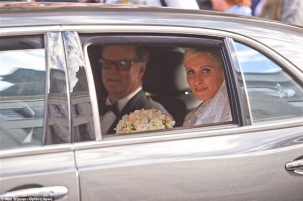 تعرضت "نيكي هيلتون" شقيقة "باريس هيلتون" لموقف محرج أثناء حفل زفافها على "جيمس روتشيلد"، حيث علق فستان زفافها الراقي الذي تكلف تصميمه 50 ألف جنيه إسترليني الذي تميز بـ"طرحته" الطويلة المُصنَّعة من الدانتيل أسفل عجلات سيارة "بنتلي".