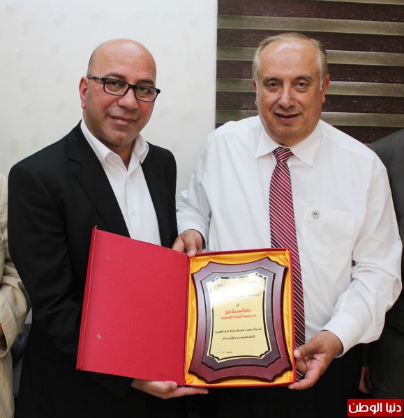 وقام رئيس الجامعة بتكريم مدير مؤسسة الدراسات الفلسطينية في القدس الأستاذ خالد فراج تقديرا لدوره والمؤسسة التي يعمل بها في خدمة القضية الفلسطينية فكريا وعلميا وتوثيقيا.
