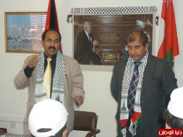 من جانبه السفير الشنفري عبر عن موقف سلطنة عمان الثابت اتجاه القضية الفلسطينية ، وان المساعدات التي تقدم ما هي الا تعبير وترجمة للموقف الرسمي والشعبي العماني أتجاه أهلنا في فلسطين وخارجها ، متمنيا" أن تكلل الجهود لإيجاد حل عادل لشعب فلسطين المظلوم ، واكد السفير بان السفارة العمانية ستبقى معينا" وفيا" لأبناء فلسطين ولاسيما اللاجئين المكلومين للتخفيف من الامهم.