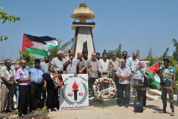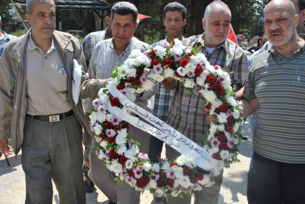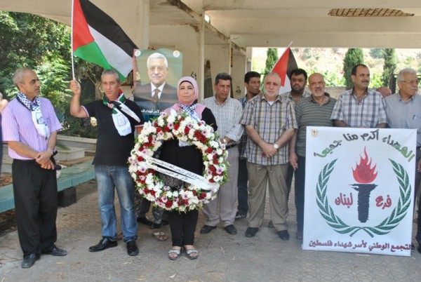 وفاء للشهداء، وتمسكا بالنهج الذي ساروا عليه، وقدموا ارواحهم زكية من اجله ، ولمناسبة عيد الفطر السعيد ، قام "التجمع الوطني لاسر شهداء فلسطين" في منطقة صيدابوضع اكليل من الزهور على النصب التذكاري للجندي المجهول في مقبرة الشهداء في عين الحلوة – درب السيم وذلك اليوم الخميس 17-7-2015.