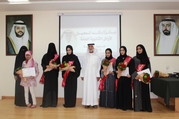 في حفل كبير شهدته المنطقة الوسطى لإمارة الشارقة ظهر أمس كرمت جائزةراشد المحيان لأوائل الثانوية العامة ظهر اليوم أوائل الفرعين الأدبي والعلمي منالبنين والبنات في المنطقة الوسطى لإمارة الشارقة وذلك بمقر مجلس أولياء أمور الطلبة والطالبات بالمنطقة الوسطى بمدينةالذيد أوائل الثانوية العامة وتأتي الجائزة لتكون إضافة نوعية لتشجيع المتميزينوتكريمهم في إطار دعم الجائزة المتواصل للعملية التعليمية في الدولة إلىالتفاصيل