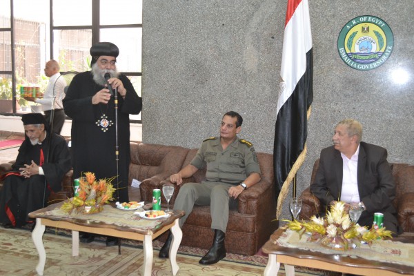 وكان المحافظ قد أستقبل الأنباء سارافييم مطران الأقباط الأرثوذكس بالاسماعيلية والأنبا مكاريوس توفيق مطران الأقباط الكاثوليك وعاطف جندى ممثلا للطائفة الانجيلية وعدد من القساوسة ورجال الدين المسيحى.