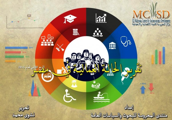 رصد منتدى المحروسة للبحوث والسياسات العامة تنظيم العمال 385 احتجاج عمالي خلال شهور ( إبريل – مايو – يونيو) بالربع الثاني من عام 2015، حيث تصدرت خلاله محافظة القاهرة المشهد الاحتجاجي بـ ( 151 احتجاج )، تلتها محافظة