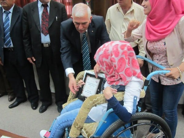 نظم الاتحاد الفلسطيني العام للأشخاص ذوي الاعاقة وجمعية الشبان المسيحية القدس - برنامج التأهيل، وبالتعاون المشترك مع مجموعة القيادات الشابة لتغيير واقع الاعاقة في فلسطين (مجموعة الخليل أولا التطوعية)،احتفالا تكريميا للطلبة الناجحين في الثانوية العامة من الاشخاص ذوي الاعاقة في مديريات التربية والتعليم في محافظة الخليل، وذلك دعما وتكريما ومناصرة لقضايا الاشخاص ذوي الاعاقة والتأكيد على المطالب، والتأكيد على الحقوقية التي نص عليها القانون رقم 4 لعام 1999 والخاص بالأشخاص ذوي الاعاقة.