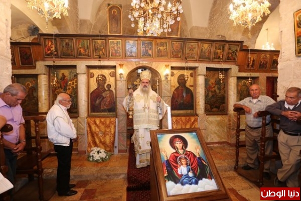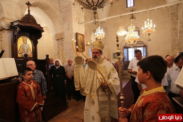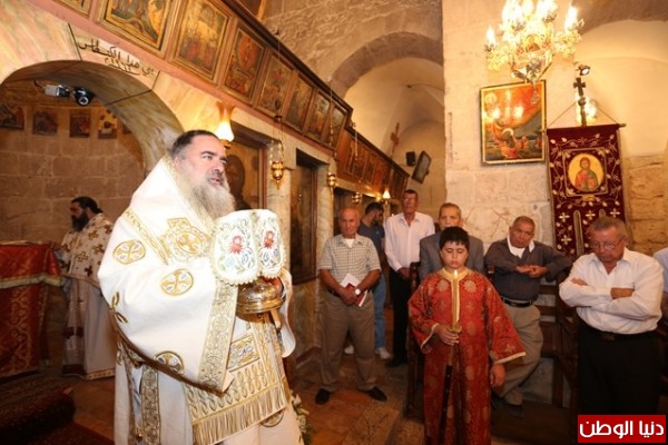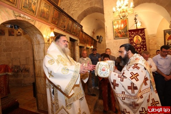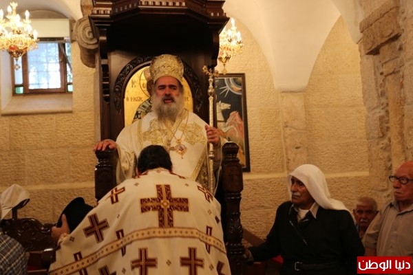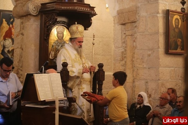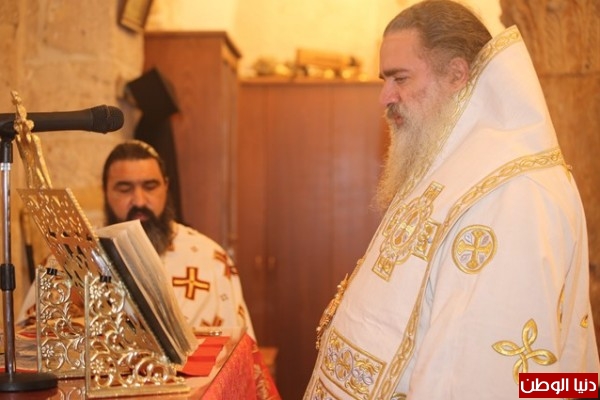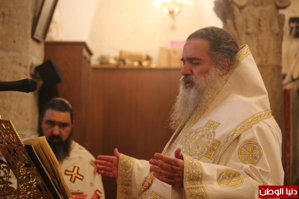 والتفت الى المغتربين الفلسطينيين الذين حضروا القداس مشددا على اهمية هذه الزيارات التي تُعتبر عودة الى الجذور مرحبا بهم في ربوع الوطن ومشددا على اهمية التمسك بالقيم الروحية والوطنية .