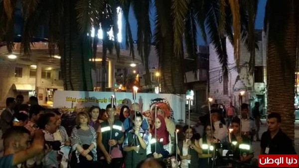 مدينه نابلس تحيى ذكرى ميلاد الشهيد ياسر عرفات بالشموع والمشاعل