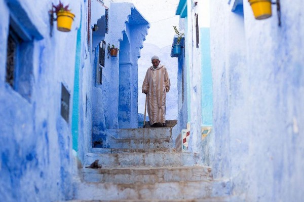 حيث يغطي اللون الأزرق الساطع جميع مباني المدينة، حتى إنارتها وحاويات القمامة فيها، ويعود تقليد الدهان باللون الأزرق إلى المهاجرين اليهود الذين فروا من إسبانيا إلى المغرب في القرن الخامس عشر، وسكنوا بأعداد كبيرة في شفشاون، واختاروا حينها اللون الأزرق لأنه يذكرهم بالسماء والله، ورغم أن اليهود تركوا هذه المدينة، إلا أن تقليد الدهن بالأزرق استمر.
