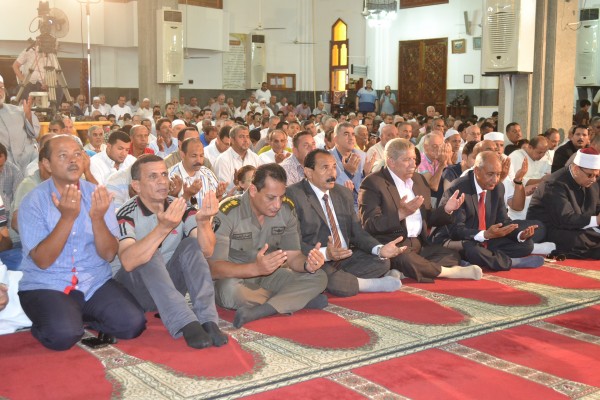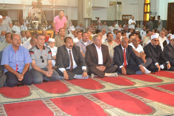 ادى اللواء يس طاهر محافظ الاسماعيلية يرافقه اللواء على العزازى مساعد وزير الداخلية مدير أمن الاسماعيلية والمهندس أبو السعود جهلان السكرتير العام للمحافظة واللواء محسن حلمى السكرتير العام المساعد والعميد عماد عبد المولى المستشار العسكرى للمحافظة وعدد كبير من القيادات التنفيذية والشعبية شعائر صلاة أول جمعة عقب الاحتفال العالمى بافتتاح قناة السويس الجديدة وذلك بحضور فضيلة الشيخ زكريا الخطيب وكيل وزارة الأوقاف والشيخ وحيد عايش وكيل الوزارة مدير عام الادارة المركزية للمنطقة الأزهرية بالاسماعيلية ولفيف من قيادات الأوقاف.