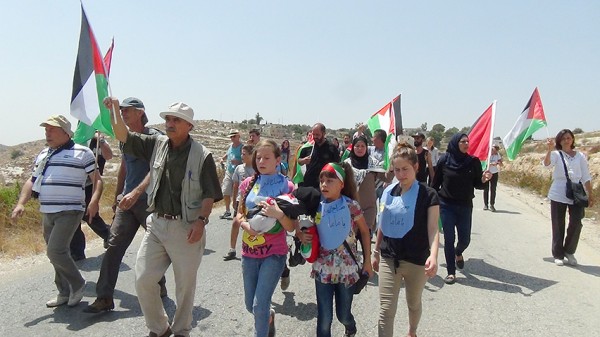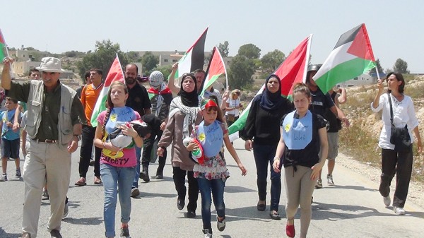 إنطلقت المسيره الاسبوعيه في النبي صالح تردد الشعارات المنددة بالاحتلال وسياساته وجريمة حرق الطفل علي دوابشه يتقدمها اطفال يحملون شعارات تستنكر ذبح الطفوله وتحمل البنات لعب تجسد رمزيه الطفل المحروق.