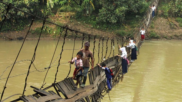 أطفال يتسلقون الجبال ويعبرون الأنهار للذهاب إلى مدارسهم