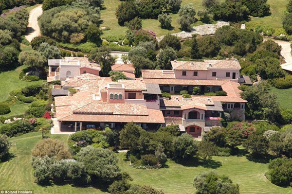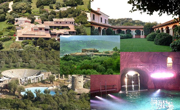 وذكر موقع إرم نقلا عن صحيفة “ديلي ميل” أن فيلا “برلسكوني” تقع على 168 فدان وفيها 68 غرفة و6 حمامات سباحة مزخرفة برسومات فريدة وتتزين إحداها بصورة أسطورة إله البحر بوسيدن وحديقة ضخمة وبركان صناعي للإمتاع.