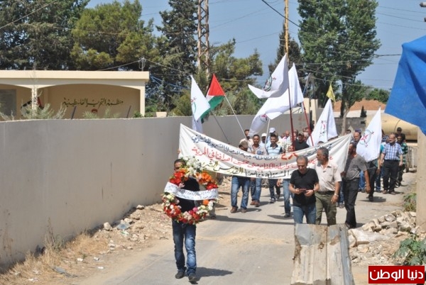 منظمة التحرير الفلسطينية منطقة صيدا جبهة النضال الشعبي الفلسطيني نظمت بمناسبة الذكرى 48 لانطلاقة جبهة النضال الشعبي الفلسطيني والذكرى السادسه لرحيل القائد الوطني الكبير الدكتور سمير ابو غوشه وتخليدا لشهدائنا الابرار,قامت بزيارة مقبرة الشهداء وقراءة سورة الفاتحة ووضع اكاليل من الزهور على نصب الشهداء الجندي المجهول في مقبرة الشهداء في مخيم عين الحلوة ,بحضور فصائل منظمة التحرير الفلسطينية برئاسة امين سرها وامين سرحركة فتح في منطقة صيدا العميد ماهر شبايطة ,والقوى التحالف الفلسطيني واللجان اللشعبية ,مؤسسات