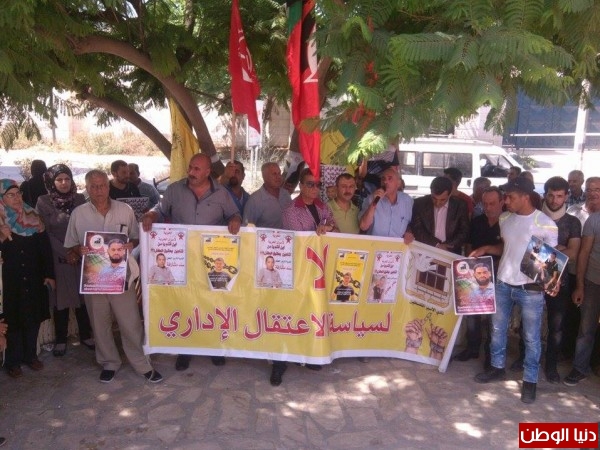 نظم نادي الاسير الفلسطيني واللجنة الشعبية لإطلاق سراح الاسرى والأطر الوطنية والإسلامية ولجنة الاسرى ولجنة الاسير ومركز حريات وهيئة شؤون الاسرى وذوي الاسرى والأسرى المحررين ونقابة المحامين والمكتب الحركي للأسرى اليوم الثلاثاء اعتصاما تضامنيا مع الاسير محمد علان والمضرب عن الطعام لليوم السادس والستين على التوالي وتضامنا مع الأسيرتين الحاجة فتحية خنفر والتى تقضي حكما لمدة " 11" شهر والأسيرة ابتسام حمارشة والتي تقضي حكما لمدة ستة شهور والاسرى المرضى والاسرى جميعا ورفضا لسياسة التغذية القسرية والهجمة الشرسة بحق الاسرى . ورفع أثناء الاعتصام والوقفة التضامنية الأعلام الفلسطينية وصور علان والاسرى المضربين عن الطعام والمرضى و الأسيرتين خنفر وحمارشة واليافطات والشعارات والرايات الفلسطينية المنددة بسياسة الاحتلال الإسرائيلي تجاه ما يتعرض له الاسرى وذويهم من ملاحقة واعتقال وتفتيش داخل سجون الاحتلال الإسرائيلي وخاصة الاسيرات والإداريين والمرضى وما يتعرضون له من ظلم وعدوان.
