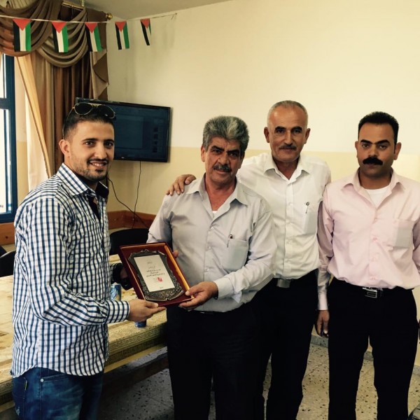 وقدم شكره لمدرسة بيت فوريك الثانوية ممثلة بمديرتها أ. الهام خطاطبة والمعلمة المتابعة للمشروع على مستوى المدرسة أ. مها عكليك، وفريق العمل من الطالبات على فوزهم بالمركز الأول في التحكيم المركزي على مستوى الوزارة وحصولهم على أفضل عرض وأفضل ملف لمشروعهم الذي عملوا على التدقيق عليه " مشروع شق الطرق الزراعية ".