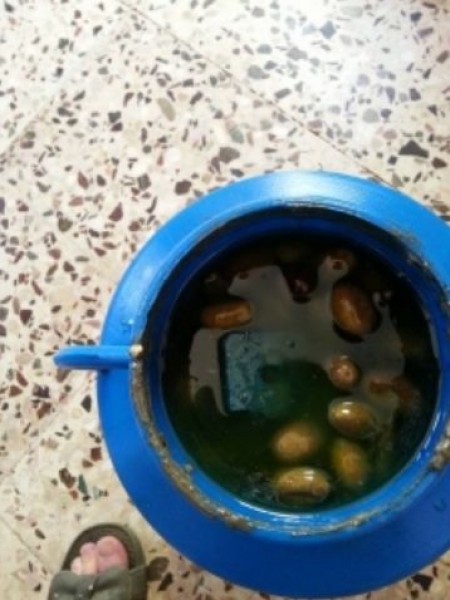 وتفيد المعلومات بان احد افراد المنزل وهي تعيش مع والدتها وبينما حاولت فتح احد هذه الاوعية لاجل استخدام مكودس الزيتون وجدا اقراصا مربعة الشكل زرقاء اللون وهي تطفو على وجه هذه الاوعية.