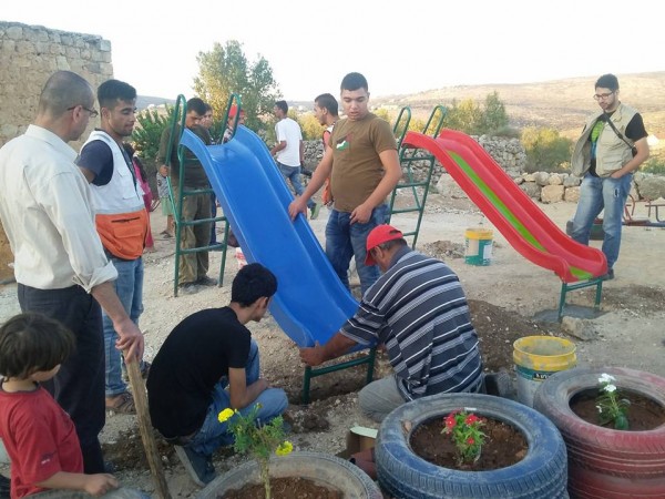 مجموعات شبابية ونشطاء مقاومة شعبية يستكملون بناء حديقة الاطفال في خربة صرة المهددة بالمصادرة