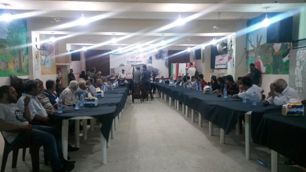 وقد حضره عدد من الشخصيات السياسية والفكرية اللبنانية والفلسطينية وبعد تلاوة مباركة من آيات الذكر الحكيم ألقيت عدد من الكلمات التضامنية بالمناسبة وأبرزها كلمة سماحة الشيخ الدكتور عبد الناصر الجبري رئيس حركة الأمة والعميد مصطفى حمدان أمين الهيئة القيادية للمرابطون والشيخ عطاالله حمود باسم حزب الله ورامز مصطفى عضو المكتب السياسي للجبهة الشعبية القيادة العامة وعلي فيصل عضو المكتب السياسي للجبهة الديموقراطية وحسن زيدان أمين سر حركة فتح الإنتفاضة وحمزة البشتاوي رئيس جمعية الصداقة الفلسطينية الإيرانية في لبنان .