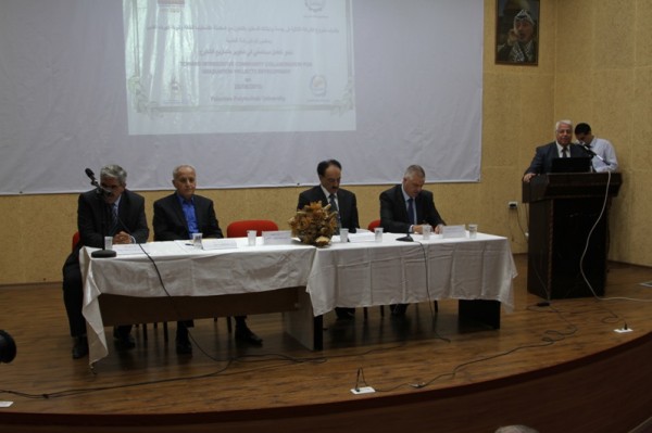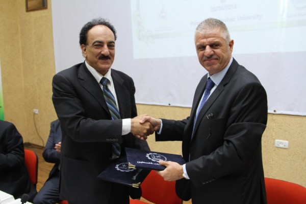 ووقع الاتفاقية الدكتور محمد غازي القواسمي ممثلاً عن جامعة بوليتكنك فلسطين وم. هاني غوشة المدير التنفيذي للحاضنة الفلسطينية للطاقة ممثلاً عن شركة كهرباء محافظة القدس.