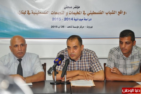 أطلقت المؤسسة الفلسطينية لحقوق الإنسان (شاهد) وجمعية الإسراء للتنمية الإجتماعية نتائج دراسة ميدانية حول واقع الشباب الفلسطيني في لبنان وذلك في مؤتمر صحفي مشترك عقد في مقر (شاهد) في بيروت، حضر المؤتمر ممثلين عن منظمات دولية ومؤسسات مجتمع مدني وممثلين عن أندية ومؤسسات شبابية.