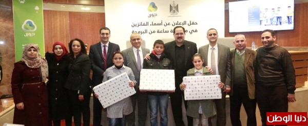 أعلنت شركة جوال عن أسماء الطلبة الفائزين بمسابقة " ساعة من البرمجة، والتي تنفذها للسنة الثالثة على التوالي وبالشراكة مع وزارة التربية والتعليم العالي، وبتنفيذ من مؤسسة مجموعة الاتصالات للتنمية المجتمعية الذراع التنموي لمجموعة الاتصالات الفلسطينية بشركاتها ( جوال ، شركة الاتصالات، حضارة، ريتش ، بالميديا)، وذلك خلال مراسم حفل الاعلان عن اسماء الطلاب الفائزين في المسابقة،والذي عُقد في شركة جوال برام الله، وبحضور وزير التربية والتعليم العالي د. صبري صيدم، ووزير الاتصالات وتكنولوجيا المعلومات د. علام موسى والرئيس التنفيذي لمجموعة الاتصالات الفلسطينية عمار العكر، ومدراء من وزارة التربية والتعليم العالي ووزارة الاتصالات وتكنولوجيا المعلومات ومجموعة الاتصالات الفلسطينية .