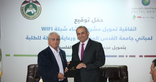 وقعت جامعة القدس المفتوحة ومجموعة الاتصالات الفلسطينية، يوم الثلاثاء الموافق 21-11-2017م، اتفاقية لتمويل مشروع تزويد مباني الجامعة بمعدات تشغيل خدمة الإنترنت (WIFI) في أروقة الجامعة بمختلف الفروع، ورعاية الأنشطة الجامعية خلال العام الدراسي (2017/2018).