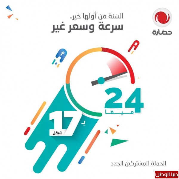 أعلنت شركة حضارة للإستثمار التكنولوجي إحدى شركات مجموعة الاتصالات الفلسطينية عن إطلاقها حملة جديدة بحلول عام 2018 تحت شعار "السنة من اولها خير...سرعة وسعر غير" وقد شملت هذه الحملة مشتركين حضارة الجدد في الضفة الغربية وقطاع غزة .